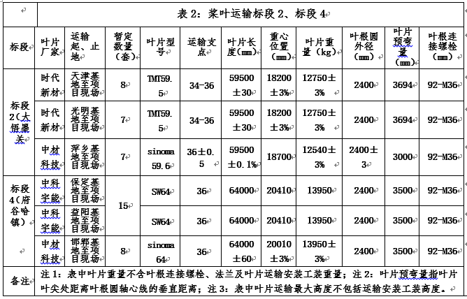 2.2? 槳葉運(yùn)輸(含長(zhǎng)途運(yùn)輸、道路改道、二次轉(zhuǎn)運(yùn)等)標(biāo)段的劃分及運(yùn)輸技術(shù)參數(shù)