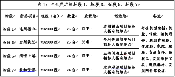 1、主機(jī)類(含機(jī)艙、輪轂及相關(guān)附件等)設(shè)備運(yùn)輸:分別為標(biāo)段1、標(biāo)段3、標(biāo)段5、標(biāo)段7共計(jì)四個(gè)項(xiàng)目四個(gè)標(biāo)段;;