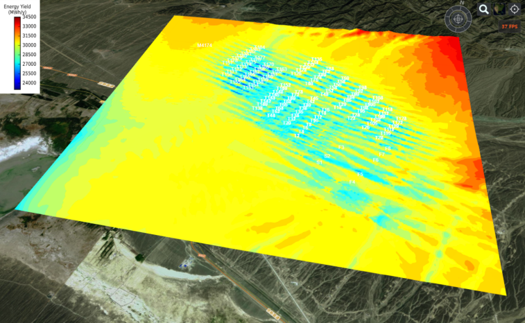 針對這個問題,“運(yùn)風(fēng)”平臺開發(fā)了豐富的尾流疊加模型,除與主流商業(yè)軟件相同的最大值模型外,還包括線性疊加、能量守恒以及平方和模型,這些工程模型及附加湍流模型均被植入“運(yùn)風(fēng)”平臺,供用戶按照實(shí)際需求自主選擇,可以更加精確地評估較大風(fēng)電項(xiàng)目的尾流效應(yīng)。